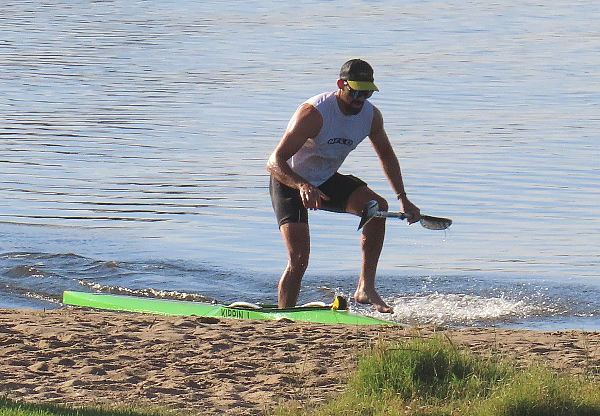 Josh continues to practice hard. As portages are an important part of marathon racing (unless you are over 65) getting in and out of the kayak is super important.
