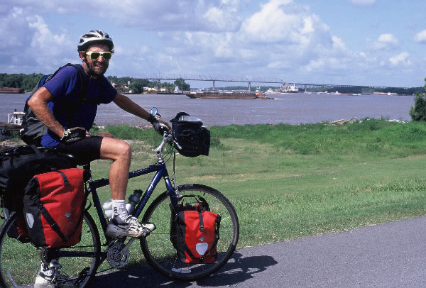 I had just paddled the entire 4000 km length of the Mississippi River, now I had a few thousand kilometres to cycle. I followed the bike path along the river for a couple of miles and then moved across to the