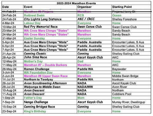 WA Canoe Marathon Championships & Australian Canoe Marathon Championships Are you ready. On the 23rd & 24th March, WA will be holding the State Championships. On the 5th 6th, & 7th April the Australian Championships will be held in South Australia. So the Champs are not that far away.