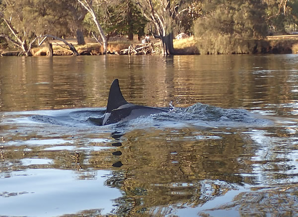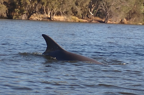 but at least one wasn’t so lucky as the dolphin surfaced with a wriggling fish in its mouth. A couple fishing on shore were not only surprised, they got wet from the splash as it chased the fish close to shore. It was fun watching and I just thought, how great it is to be on the water watching dolphins 38 kilometres from the ocean. I expect to see them around Fremantle and Perth