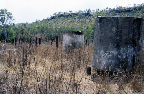 tanks, which looked as if they were concreted around steel. A herd of cattle, with a bull that didn’t seem too impressed with my presence stood between me and the other ruins. A big wave with my camera bag and they were off.