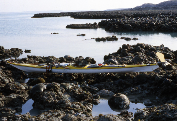 and mangrove roots that blocked the waterless channel. Dragging the boat over the oyster rocks was too damaging so my gear had to be taken out of the kayak and carried over the rocks and the mud to be loaded in deeper water. It wasn’t easy, my kayak weighed 40 kg but nothing is easy up here, you have to grit your teeth and just get stuck in. After returning for my gear I loaded and briskly got the hell out of the mangroves to the open water. Further along the coast I passed several pearling