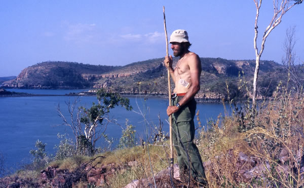 was no beach, only a rocky shore lined with mangroves. The high tide enabled me to slice through the mangroves onto a slippery rock ledge. I had no time to lose, once ashore I had to start my 15 kilometre walk to the old Mission and back before it got too late in the day. There was a choice of two routes, the direct one over the hill or a longer route following a creek line. With my pack full of cameras and survival equipment I decided on the direct route.