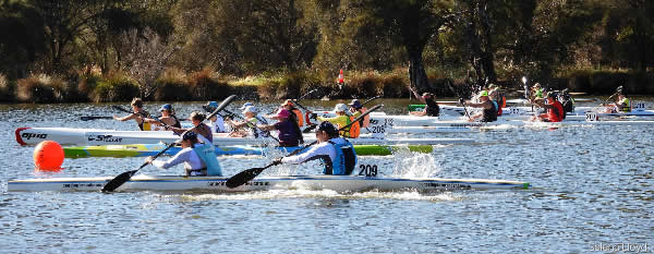 After we finished racing on Saturday at the State Marathon Champs, 5 of the big red buoys that we have to mark out the course were stolen. This wasn't realised until Sunday morning day two of the event so some quick action had to be taken to get the course ready for the doubles racing. So watch out for 5 red buoys floating around with club or marathon names on them. Otherwise the weekend event went off really well.
