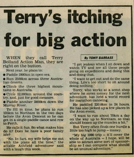 In 1989 I ran up to Northam and raced back in a C1. Another year I paddled from Bayswater to Northam against the current and paddled back in the race.