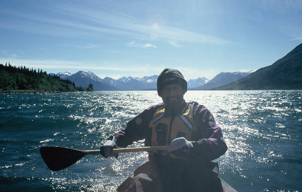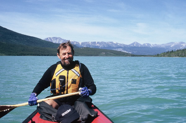 super-sonic pace so we were happy. As the waves picked us up and the canoe started to surf Ed accelerated his paddling rate to surf faster. I could sense he was enjoying the ride but this wasn’t the warm waters around our home city of Perth, we were in a cold Canadian mountain lake. As another wave picked us up, we started to surf once more and Ed again paddled harder to gather speed,