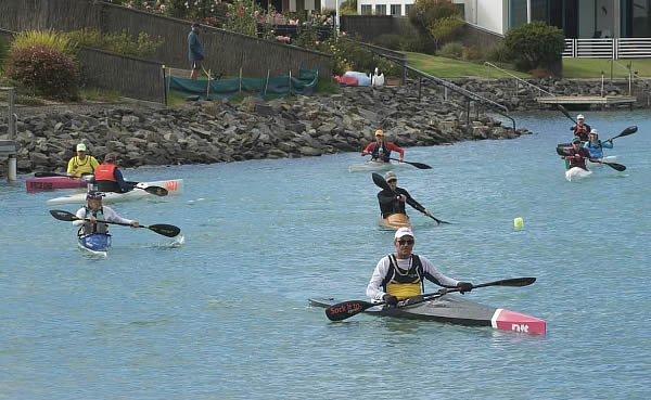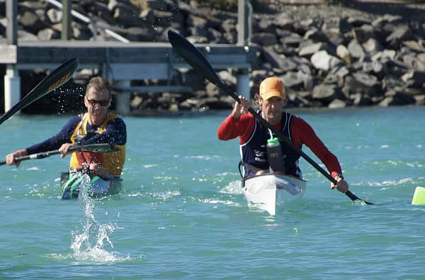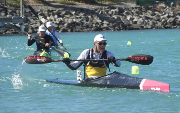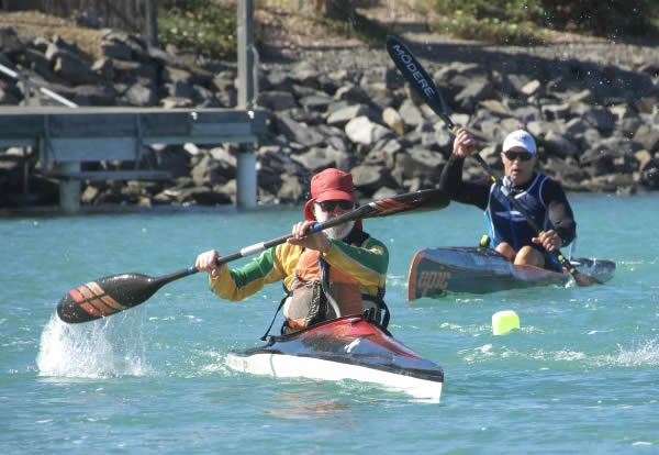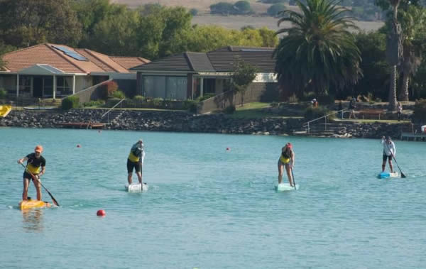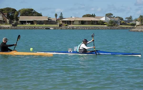 Australian Canoe Marathon Champs Encounter Bay, South Australia my K1 race I had two races on day one, a 16 km K1 race and a 12 km SUP race but the K1 race was the most important. Terry Poole was again my main opposition in K1. I have raced him four times and it is 2 to him and 2 to me. It was his turn to win this year, but I will be trying to make it hard for him. There were two new paddlers who