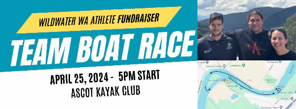 David Burdett, Harry Langley and Nina Mueller have been selected for the Australian Wildwater Senior Team this year and are hosting a fundraiser event to help them get to this years international events held in Macedonia, Italy and Spain! The team boat race will involve random selection of teams to race in doubles/K3/K4 (teams and start list will be announced a few days prior to race day). Paddlers of all ages and experience are welcome! Please arrive early