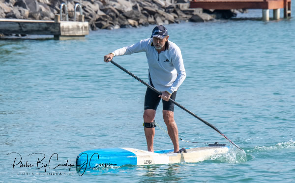 other 3, but it was a wonderful experience to slog away and know I still had the energy to endure the physical and skillful challenges that it takes to paddle a SUP at 73. I heard my SUP mates cheering from the beach as I passed it and paddled to the bottom turn which was roughly 400 metres back to the beach, and roughly a kilometre from the finish line because of the short lap we had