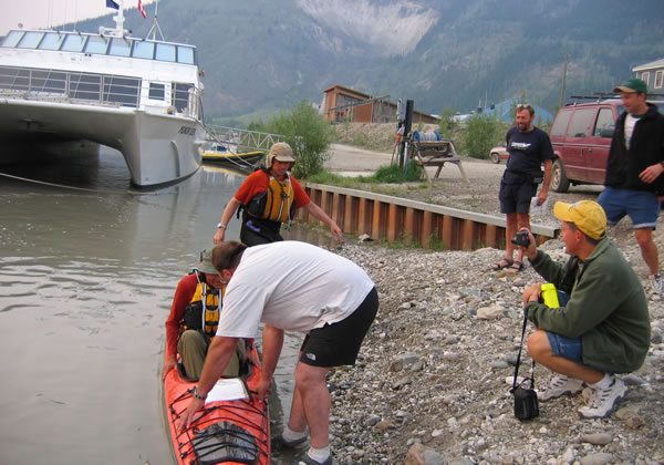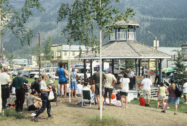 crew. We had been duelling with them at the early stages, so I couldn’t resist having a chat to them when breakfast was over. With all the talk, time had slipped by and by the time we left Klondike Kate’s in an over excited mood, it was nearly lunch time. We walked around town and then to the finish line where paddlers, looking like death warmed up, were still getting off the water.