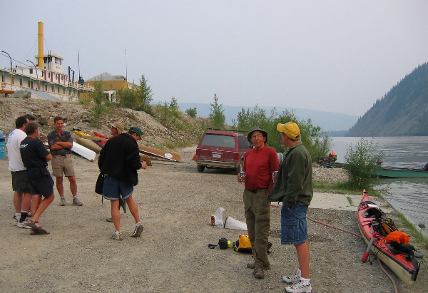 competitors were headed home, our race canoe was put on a trailer and gone and our sturdy expedition canoe had been transported from Whitehorse and stored outside our accommodation waiting to continue its trip. Seeing everyone leave was quite a sad moment; the race had been such an extraordinary experience, and one I didn’t really want to let go of so soon. The day was hot, the smoke