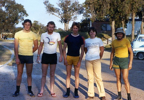 The Ascot Kayak Club Blackwood Marathon Dream Team. Steve Pilton (Cyclist), John Broom (Swimmer), Darryl (Paddler), Vicky Long (Horse Rider) and me (Runner).