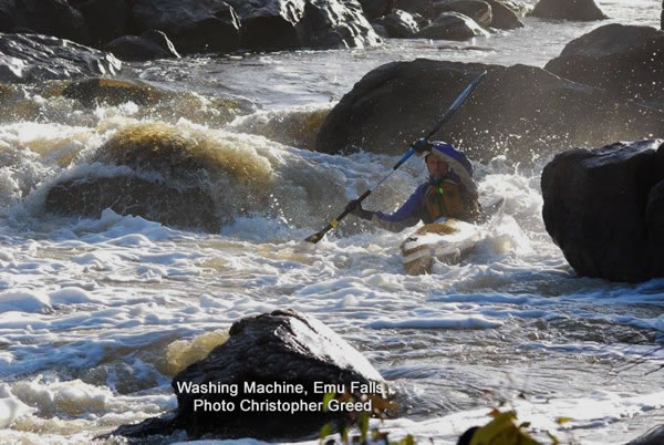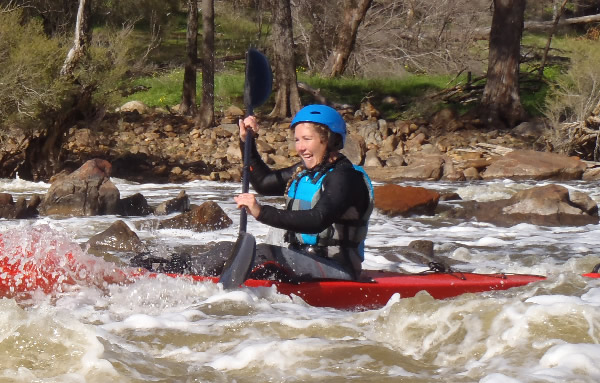 race lines through a series of rapids. The Blackwood River consists of exposed rocks and Ti-trees, with the added fun of a strong current.