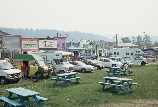 One crew had rigged up speakers in their canoe and were playing music on the way down, which must have been a blast. The day was warm and the air hazy with smoke. Although Dawson was very touristy it was a unique town as it had retained the character and charm of all its buildings. If it wasn’t for the cars you could mistake it for a Hollywood cowboy movie set. I loved the