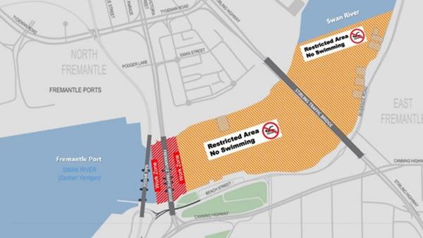 - Due to heightened levels of underwater noise, restricted areas will be implemented from the Fremantle Traffic Bridge to the east of Stirling Bridge and will apply to swimmers and passive craft users. This will mean the following recreational activities