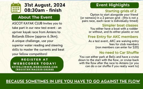 Race Against the Flow Upper Swan Amiens Cres to Bolland's Elbow/Bells 6.5km Upstream Against the Flow Saturday 31st