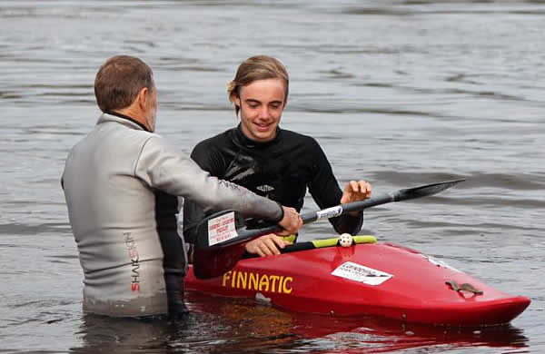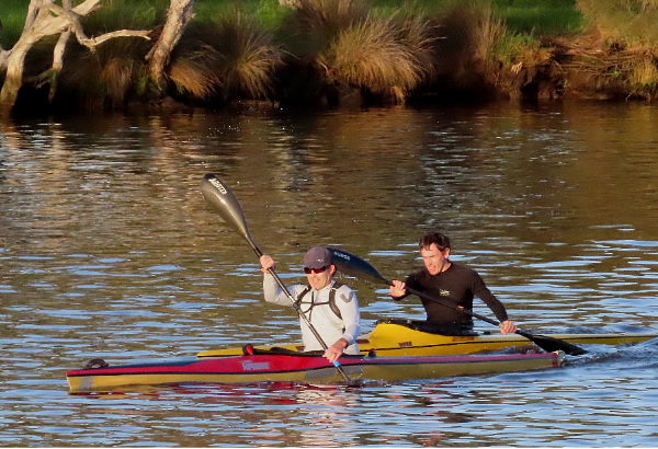 Paddlers start at different times depending on their speed. Chris and Greg having a great fight.