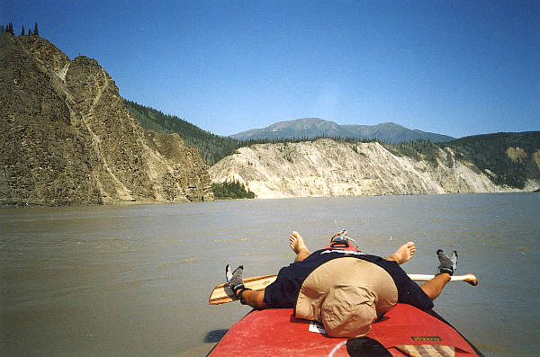It was good to lie back and just drift with the current. At the 220.5km mark from Dawson it was time to end our ‘quiet moment’ and start paddling again but it was hard to get back into a rhythm. It reminded me of my 24