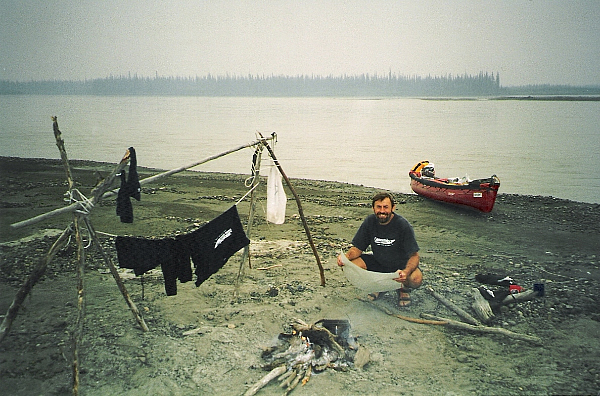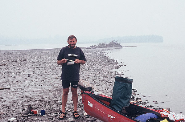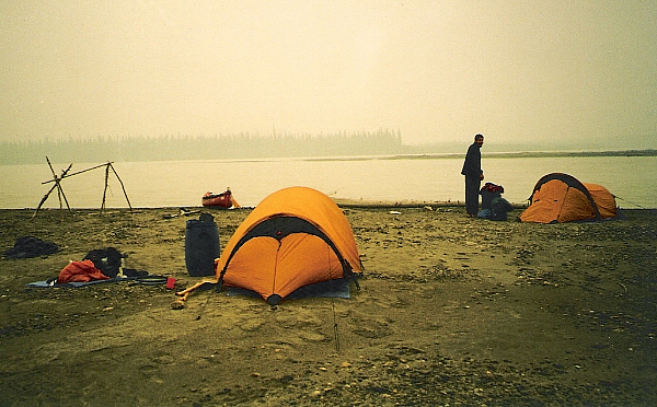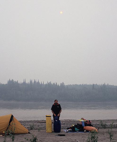 The Yukon River Descent Into the Smoke Thursday 1st July. Peeking out of the tent I could see the smoke hadn’t cleared during the night. As soon as I was on my feet and out of the door I immediately grabbed the trowel, walked swiftly into the vegetation and dug a hole. However the mosquitoes swarmed and forced me to run back to my tent to put my trousers on and to dab some