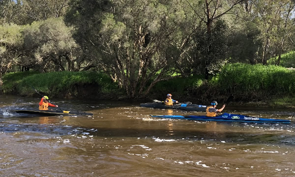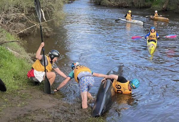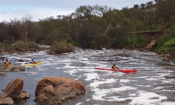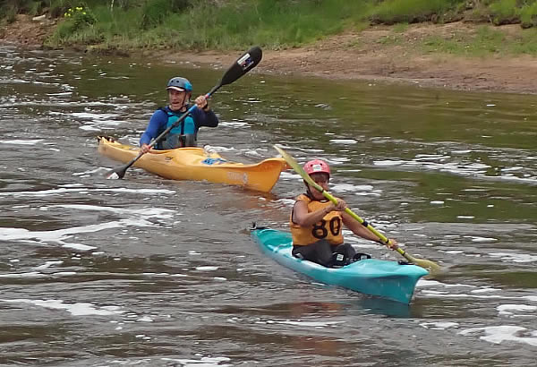 The longer boats with rudders are faster than the wild water kayaks. Photo Tim Edwards