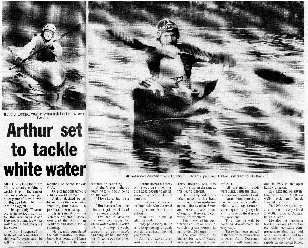 Back in 1995 when I was about to paddle up-stream from Bayswater to Northam and then take part in the Avon Descent, Arthur Leggett was in the same newspaper. He was training for the Avon Descent at 76 years old. Arthur is a war veteran and was held in a prison camp in Poland. He is now 106 years old. He was a member of the Ascot Kayak