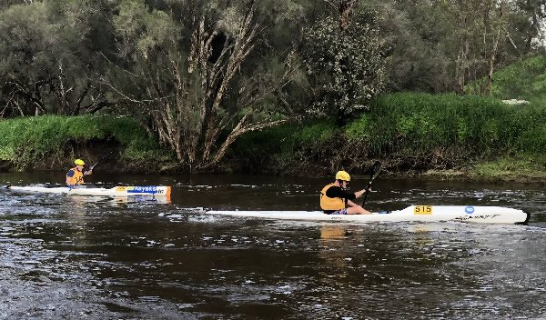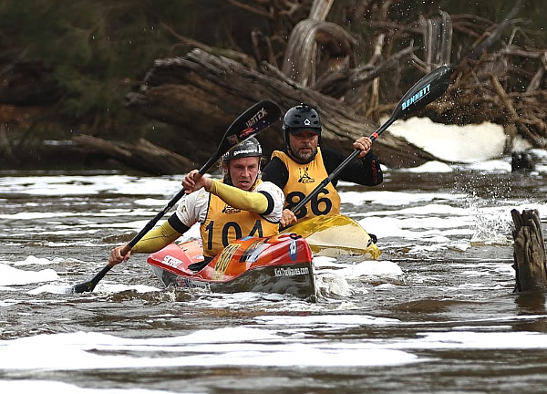 Winner of the plastic class Chris Watson leads Matt Jones up against the flow. Photo Tim Edwards