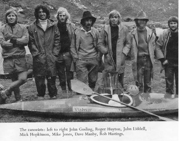 (53 m/km). By comparison, the man-made 1972 Olympic slalom course at Augsburg in Germany falls at 50 feet per mile (9.5 m/km). The launch off was at a record 17,500 feet (5,300 m) above sea level and runs for 80 miles (130 km). The team consisted of Mike Jones, Mick Hopkinson (part of the Blue Nile team), John Liddell, Rob Hastings, Roger Huyton, Dave Manby and John Gosling. The expedition suffered many problems with finance and sponsorship, and several people declined any