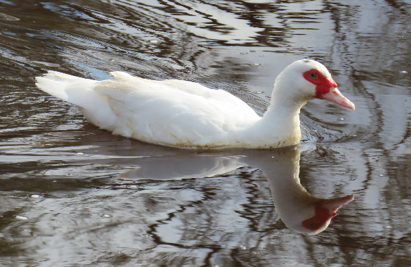 was oppressive and burning our throats. To help reduce inhalation Ed wrapped his bandana and I wrapped my Uveto Hat over our mouths to block it out. Although we were not suffering at all with throat or breathing problems we were wondering how long we could go on breathing in the smoke if it didn’t clear. Several ducks floated in a straight line ahead of us as we began to gather speed.