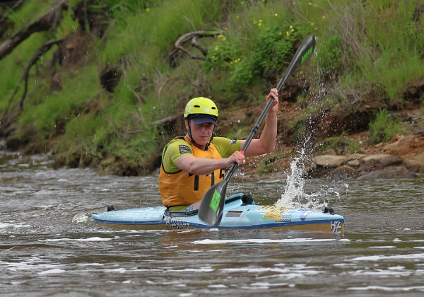 Kieran Simpson winner of the Wild Water class zips passed Manny Carabott. Photo William Te