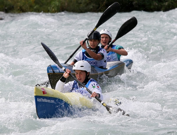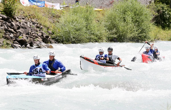 Boy's team event. Crossing the finish line upside down disqualifies the run. The boat is considered upside down when the body of the athlete is entirely under water.