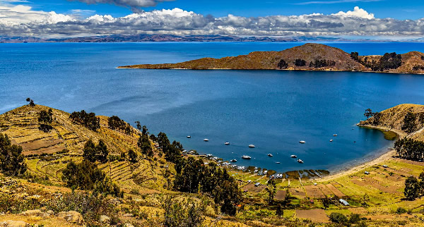 A view of Lake Titicaca taken from the town of Copacabana, Bolivia.