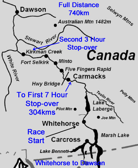 immediately I was captivated. I just knew that Ed and I had to take part in this fantastic event and with Ed needing no convincing we sent in our $300.00 entry fee. It did mean however, that our whole journey had to be structured around race day. The article read, ‘The Yukon River Quest, at a distance of 740kms is the longest endurance marathon canoe & kayak race in the world’!!