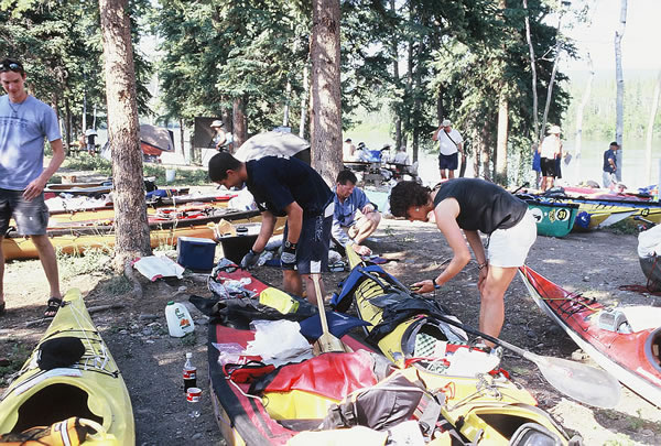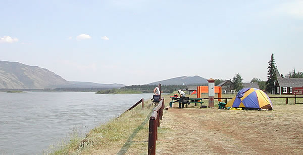 bought us a 10 litre bottle of water and offered to carry some of our gear to the end. We only accepted the water. Many of the leaders were camped in mobile homes, apparently with air conditioning. For some mad reason I wasn’t at all jealous; I didn’t mind roughing it, but it was extremely hot! We had a seven hour break to enjoy on the outskirts of the town of Carmacks. Most paddlers