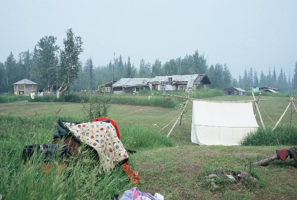 light I covered my face with my T shirt, but instead of blocking out the sun I almost smothered myself and made me sweat even more. The camp was filling, the noise increasing and the probability of sleep was nil. Sweat continued to run down the entire length of my body, God it was hot! Here I was in the far north of Canada and sweating like a pig. I thought it was supposed to be cold