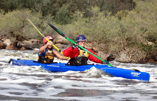Jeannette Busch and Kate Crossing happy to be on whitewater.