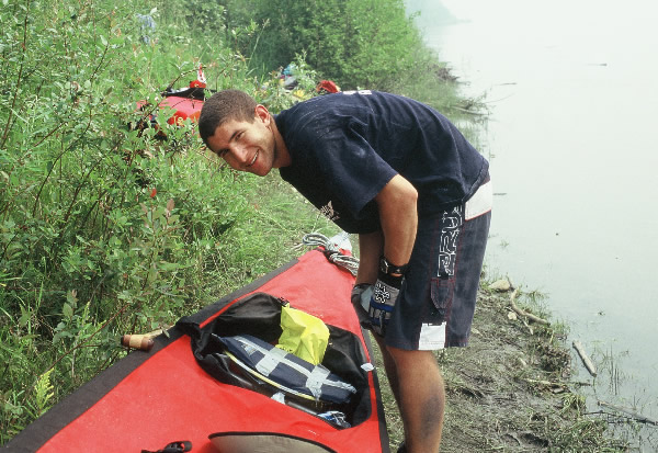 were to rest. We erected the tent under the shade of a tree and he crawled in, but nothing could have prepared him for the near 38° Celsius temperatures that made sleeping in the middle of the day virtually impossible. I returned to the canoe to drain the water, to clean our equipment and to prepare our gear for the next leg of our journey. A guy from one of the other support teams had