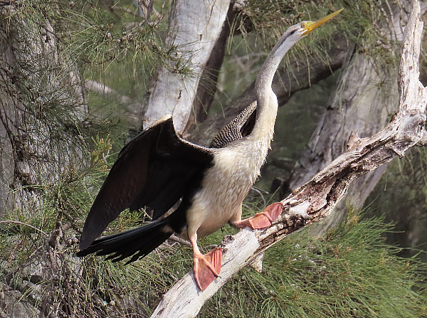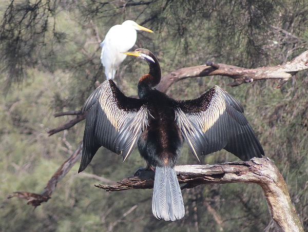 were perched on old logs and branches, a Darter posed for me at the corner and noisy Little Corellas and a few galahs circled the reserve which was buzzing.