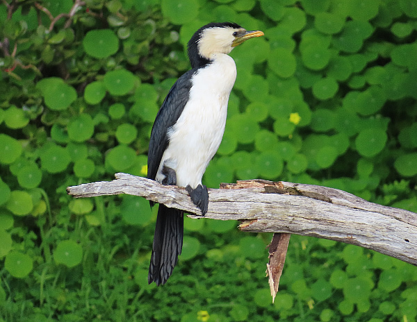 Little Black Cormorants rest on a log.