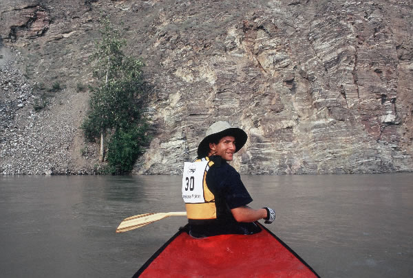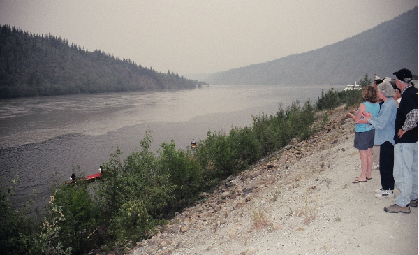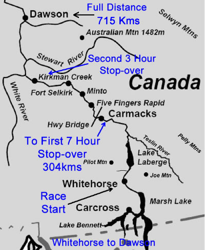The Yukon River Descent The Yukon River Quest Race I think I managed to grab an hour of disturbed sleep on our 3 hour compulsory stopover. We stood on the shores preparing our boat for our shortest section of 155 kms when an incoming canoe was seen on the far side of the river, the canoeists paddling awkwardly out of the smoke haze. They were obviously confused as to where they were. Shouts from the