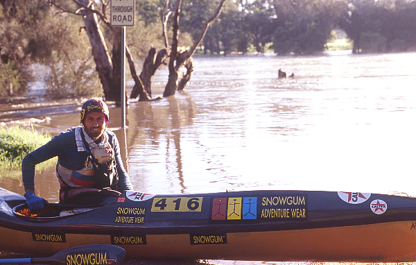 was still well behind but as we crawled out of the shallows he had taken another route and was catching up. Our speed increased as the water deepened and we were soon back to full power. Though Ed was still suffering from aches and pains on this leg of the race, he was paddling particularly well. No rests, no quick naps. This was the biggest challenge that he had ever taken in his young life and he had now grasped it with heart and soul. In the meantime I had lifted my own pace and with about 25kms to go I felt that I could ask Ed to lift his pace even higher. Ed responded and at that instant I could feel the canoe lift and take off. It was such an amazing feeling, to experience the speed of our canoe rapidly accelerate down the river. No one would pass us now. But to our alarm Joe somehow found the strength to catch us, keep up and ride our wash. He knew though