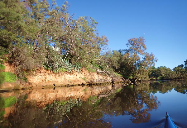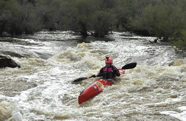 Paddle Up The Avon River to Northam In 1995 Back in the day when I used to challenge myself more than I do now I paddled from Bayswater up the Swan and then the Avon River against the current. The water was high which made it easier and more difficult. Many of the rapids were washed out whilst the big rapids were big. The fast current, the drops and the swirls, eddies and the trees made paddling upstream quite a challenge. I had to use the slower water behind rocks, in the trees and use the eddies to climb the rapid river. I had to do a lot of ferry gliding across some very fast chutes and waves. When I did have to portage one of the big rapids it was often