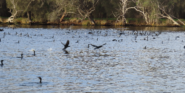Little Black Cormorants. Leaving a tree full of Little Black Cormorants I moved under Guildford Bridge and spotted a Dusky Moorhen but it was too sneaky and swan under some branches so I failed to get a photo. At Point