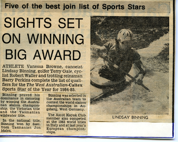 Lindsay has also been a Wild Water Champion and won the Avon Descent in a single kayak and a double kayak. As a junior he was also an amazing paddler.