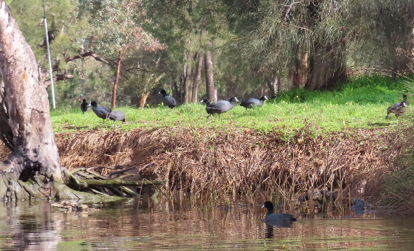 Reserve a Silver Gull was just perched on a log and invited me to take its photo as it didn’t move. 500 metres further a bunch of Geese were less shy than the Moorhen although much noisier. Rounding the next corner several Eurasian Coots were feeding on grasses. Other days I have seen up to 30 of them grazing together. Not far from a fisherman a Darter was perched high in a tree with an Egret a little further looking down at a fisherman and I suspect hoping to get a feed. I just couldn’t believe