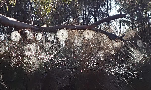 in the World Masters Canoe Marathon coming up. The sun was in my eyes as I headed upstream and at the 3km mark I passed a pair of Australian Shelducks with a bunch of fairly newly born ducklings keeping close to their parents. I kept going as I was on a mission to get to the 7 km mark where I would turn, however about 500 metres before Barkers Bridge I noticed a lot of cobwebs
