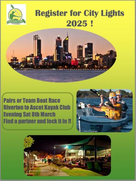 Races Coming Up 8th March - City Lights 23rd March - Rod Fry Race 29th/30th March - WA Marathon Championships 10th-13th April - Australian Canoe Marathon & SUP Championships