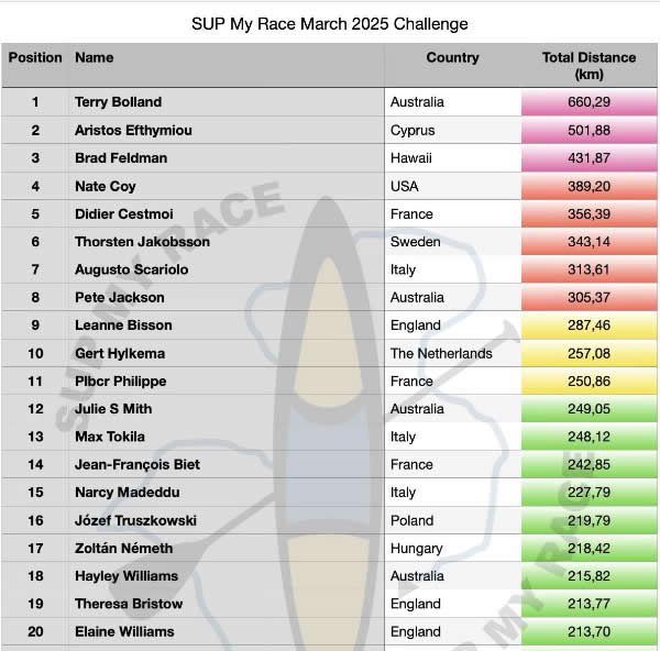 My best reward for the month was having paddled the most SUP kilometres in the world that are recorded. This was my 5th month being at the top. This