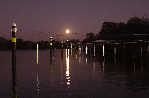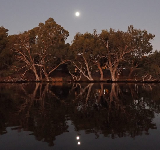 8.00 pm. Took Leena for a walk. The moon shone on the river and through the trees.