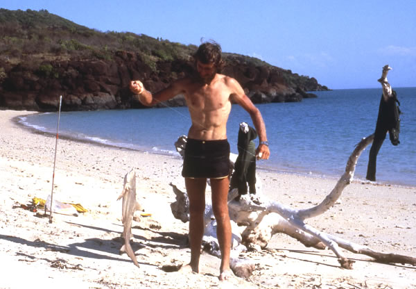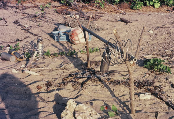I camped for the night near Elbow Point overlooking the Sir Graham Moore Islands, but there were no trees in which to tie my hammock. In the war there were two units stationed on Sir Graham Moore Islands, one American (Lourain) and the other Australian (Radar). The only evidence that remained of their visit were a few drums, some other discarded