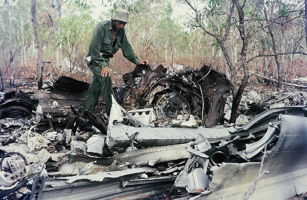 but much of it was overgrown by wattle trees. A crashed B24 Liberator aircraft, a communication tower and other derelict equipment lay near the runway. Hundreds of steel mats littered the airstrip and 44 gallon drums were scattered about.